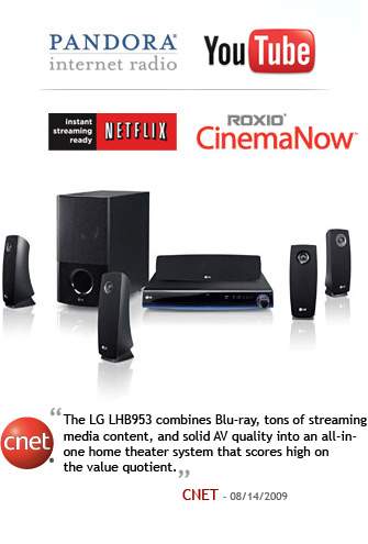 One thing I love to do is watch movies. I’ve been a Netflix member since 2001 and try to review each movie and share my favorites with friends. While there have been tons of cables, adapters and file converters to get your videos and movies to play on your television, nothing has every really been as easy as this new stereo I found through Netflix. The LG LHB953 is an integrated home theater system that plays Blu-Ray DVDs, streams Netflix movies from your Instant Queue, includes a charging and docking station to view your videos, pics or music from your iPod or iPhone, links to your Pandora radio profile of favorite stations, access to rental and purchase of CinemaNow movies and television plus access to YouTube including your favorites. This little gem is perfect for the big screen TV in your house that everyone can gather around and view some of the online videos that normally would have everyone huddled around a monitor in the home office. Think of the surround sound you already have. Now think of the next party you host that will now be accompanied by your favorite Pandora station over your existing HD audio speakers! Now that is a party!