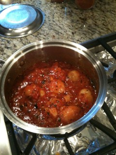 6) Once the gravy gets little dry add potatoes and about 2-3 cups of water. Bring it to a boil
